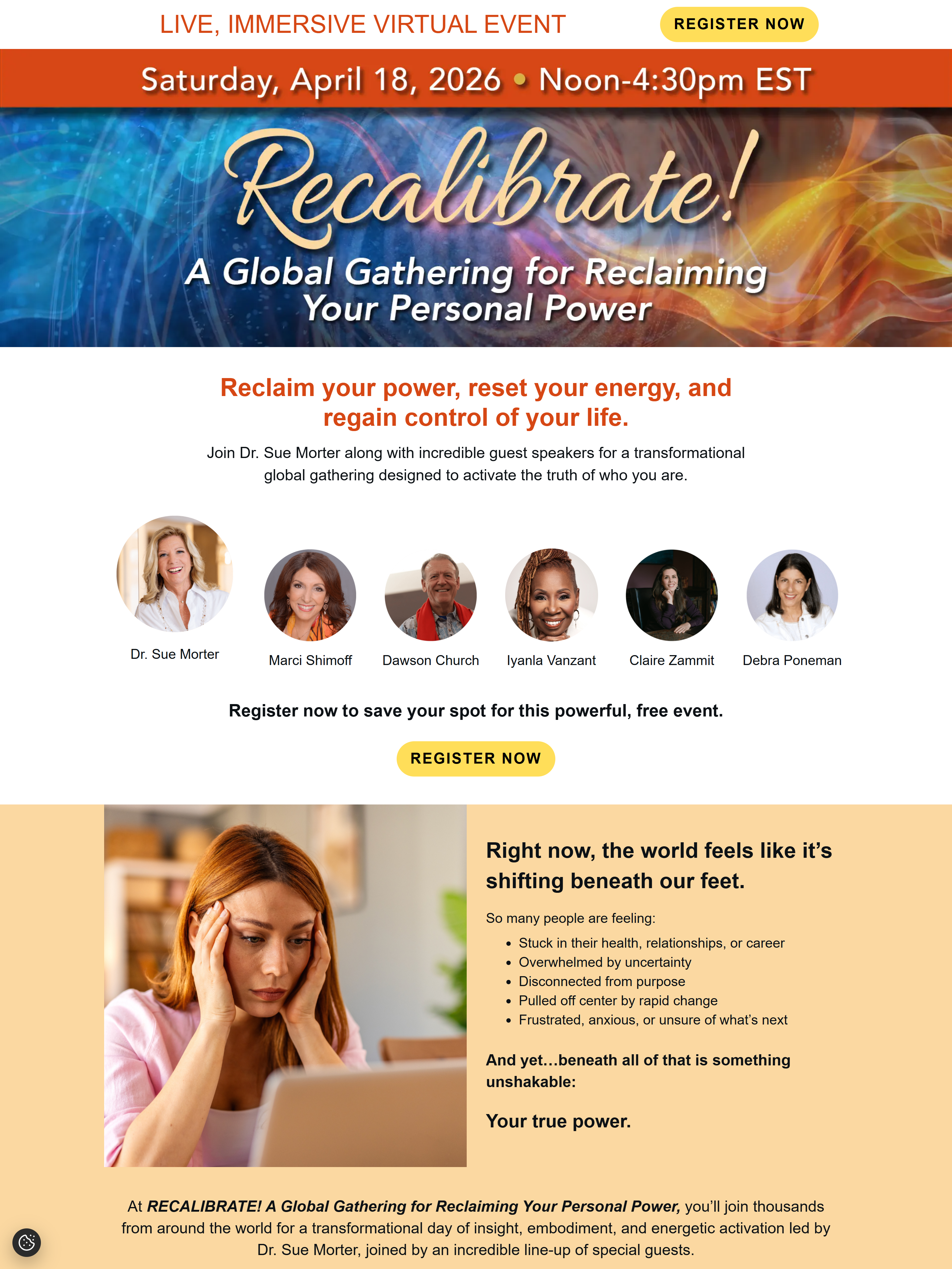 Inscreva-se gratuitamente com a Dra. Sue Morter e aprenda a curar e reequilibrar sua energia.